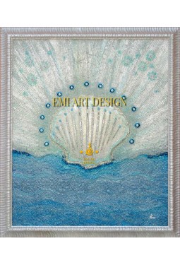 Dim. 67 x 80, uokvirjena, delo na lesu, tehnika: mešana, kovina, pesek, srebrni prah, steklene kroglice, akrilne barve
